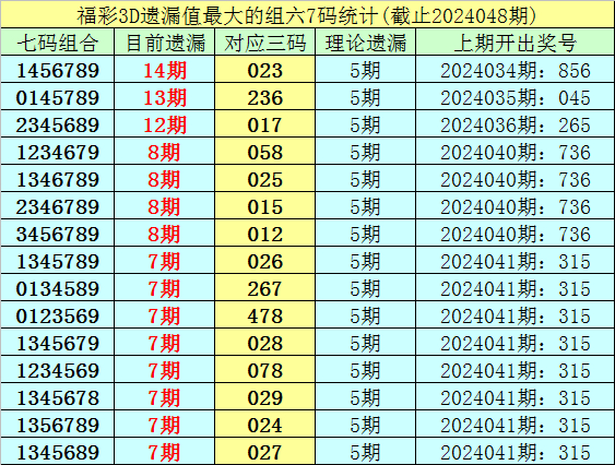 博彩平台注册送福利在线现金福彩3D七码遗漏组六分析(第2002001期-第2024048期)